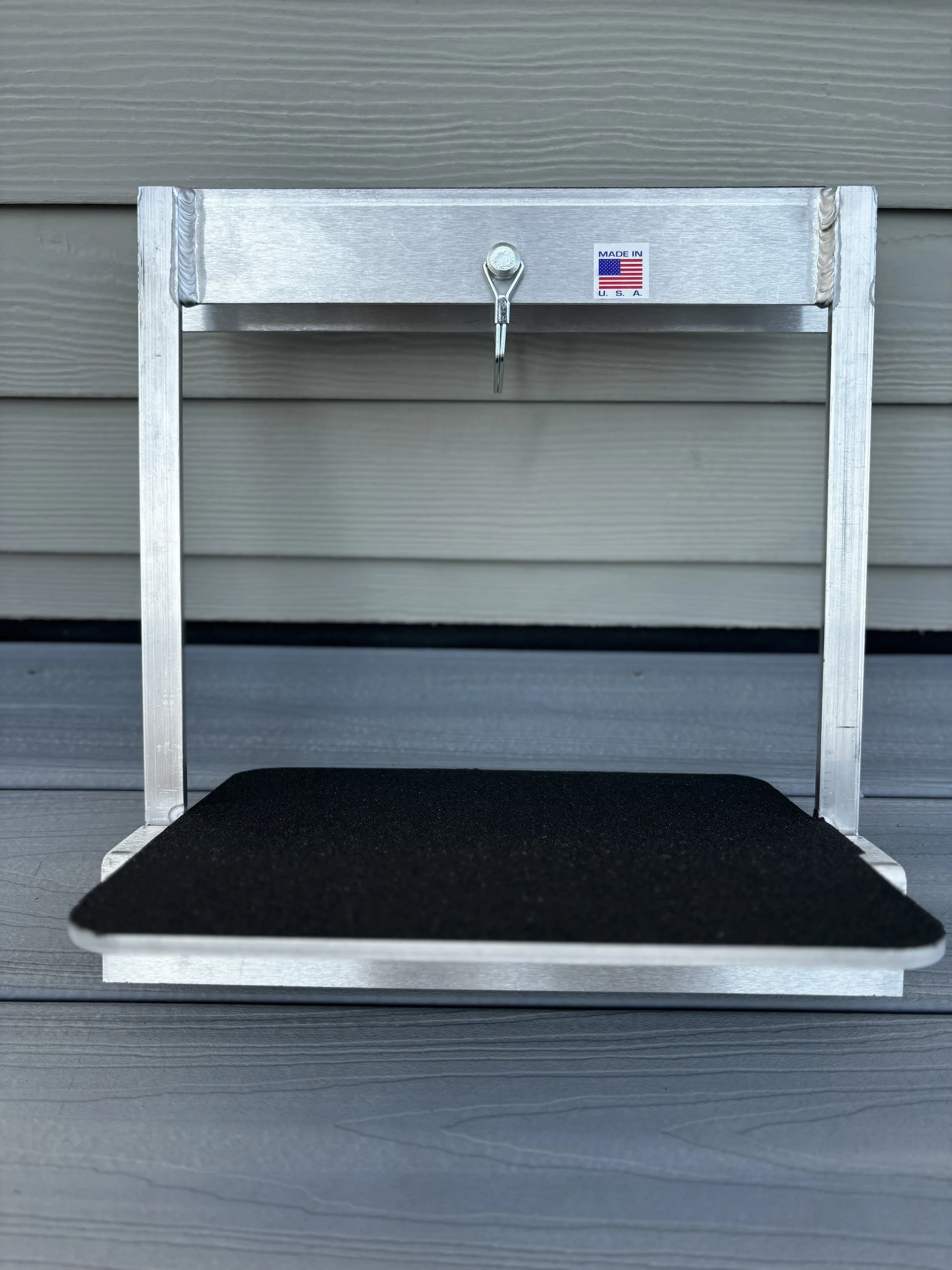 Absolutely. The Perch is engineered with safety in mind. It includes anti-slip grips, a balanced weight distribution system, and reinforced aluminum framing to support secure use at elevation.